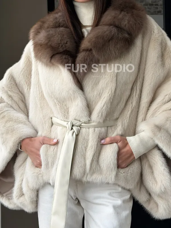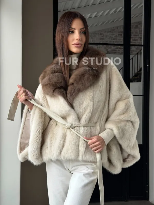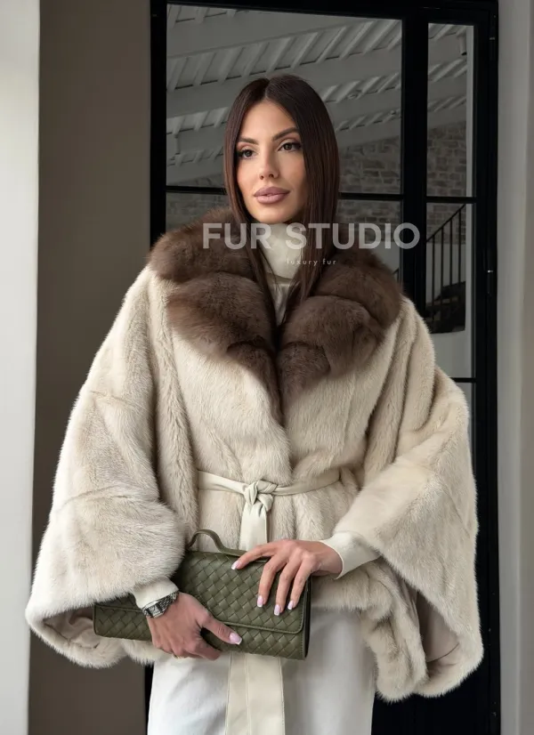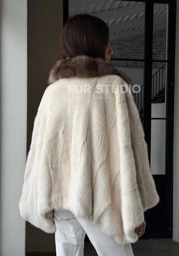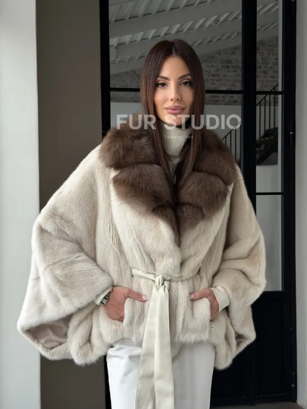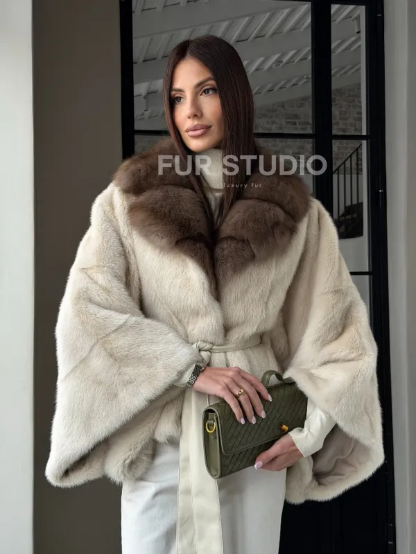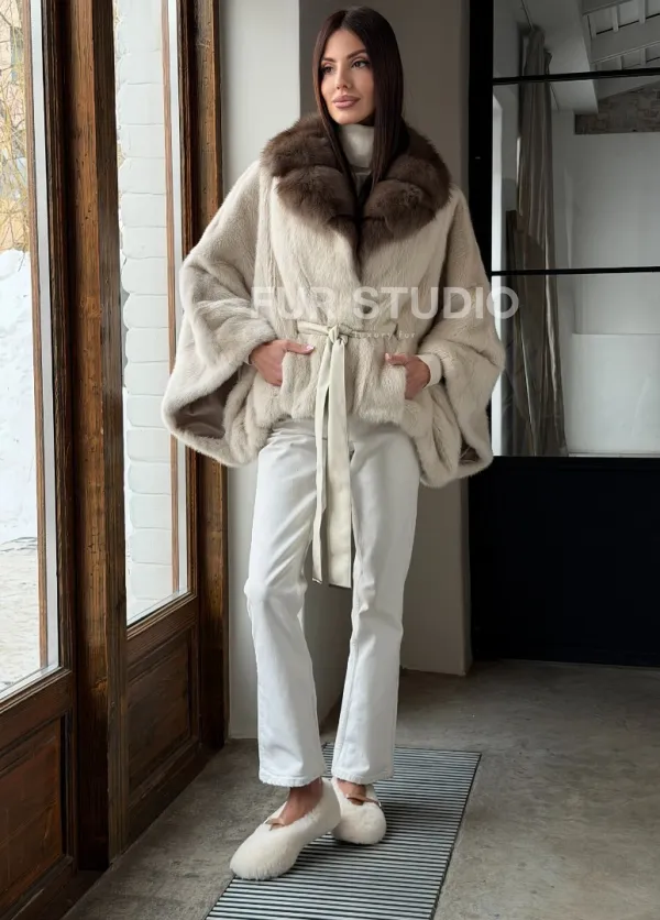 Светлое норковое пончо с воротником из куницы доступна для покупки в нашем шоуруме Furs Studio в . У нас так же есть доставка во все города России. Добавьте немного роскоши в свой гардероб с этой шубой, которая будет служить вам многие годы.