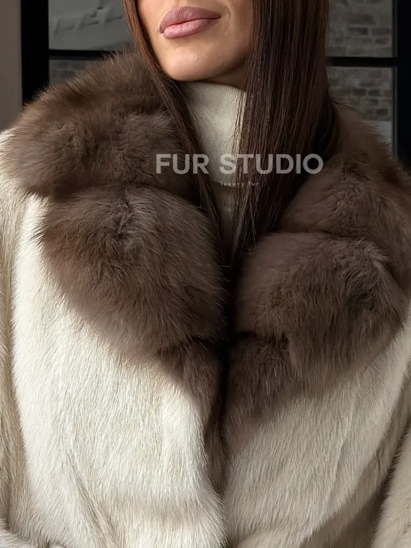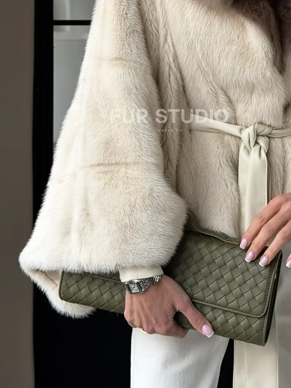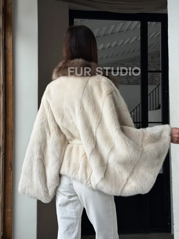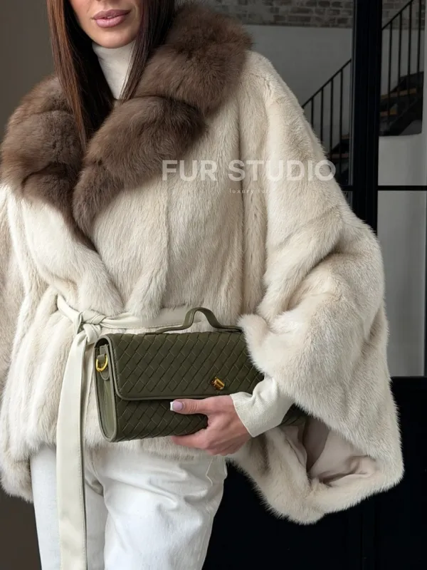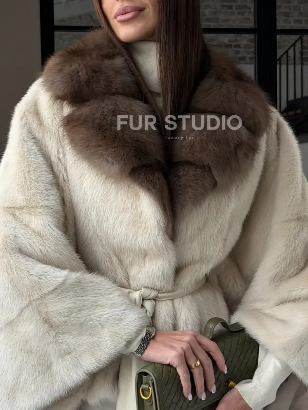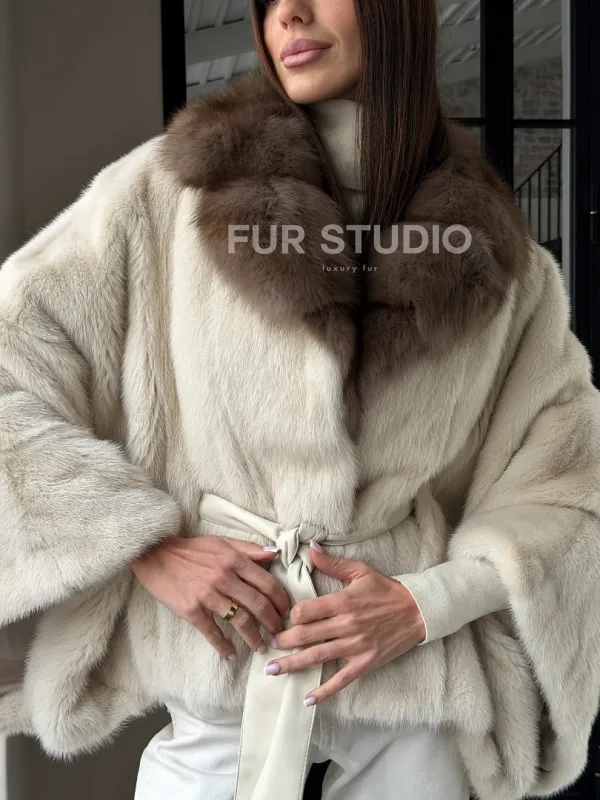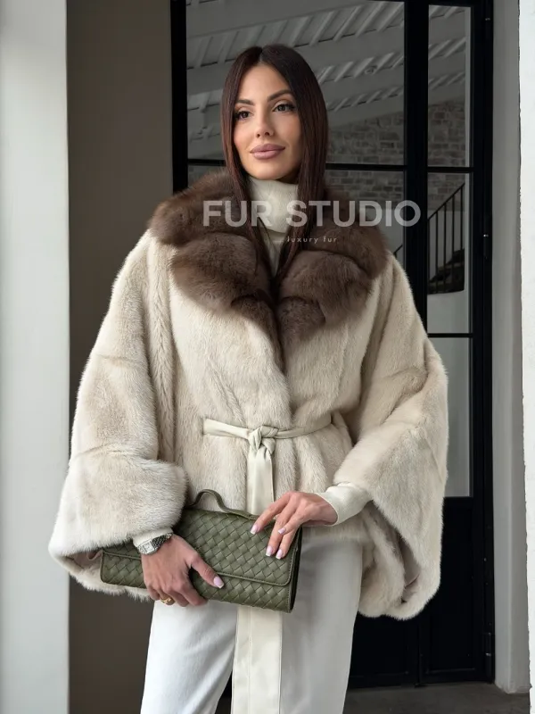 Светлое норковое пончо с воротником из куницы доступна для покупки в нашем шоуруме Furs Studio в . У нас так же есть доставка во все города России. Добавьте немного роскоши в свой гардероб с этой шубой, которая будет служить вам многие годы.