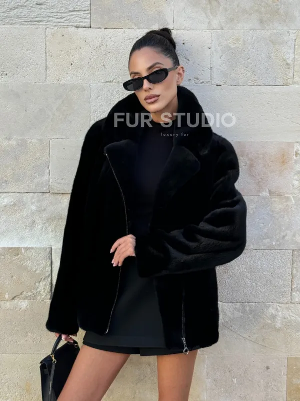 Черная косуха (куртка) из скандинавской норки 101071