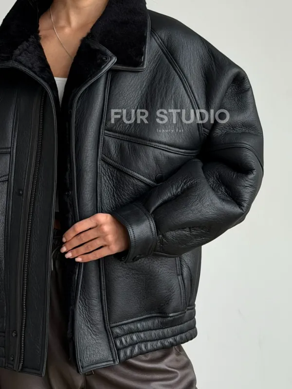 Черная натуральная дубленка из овчины 102599