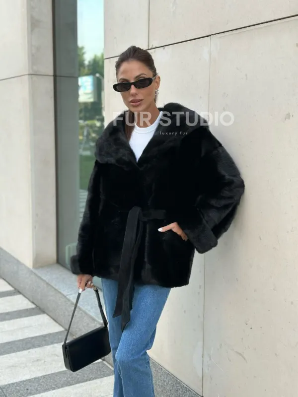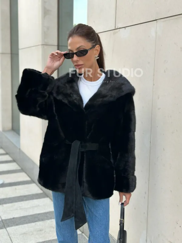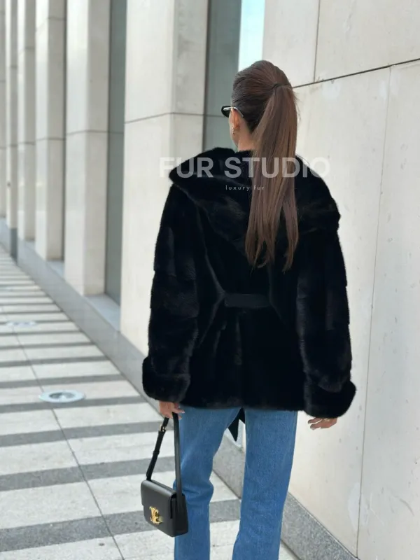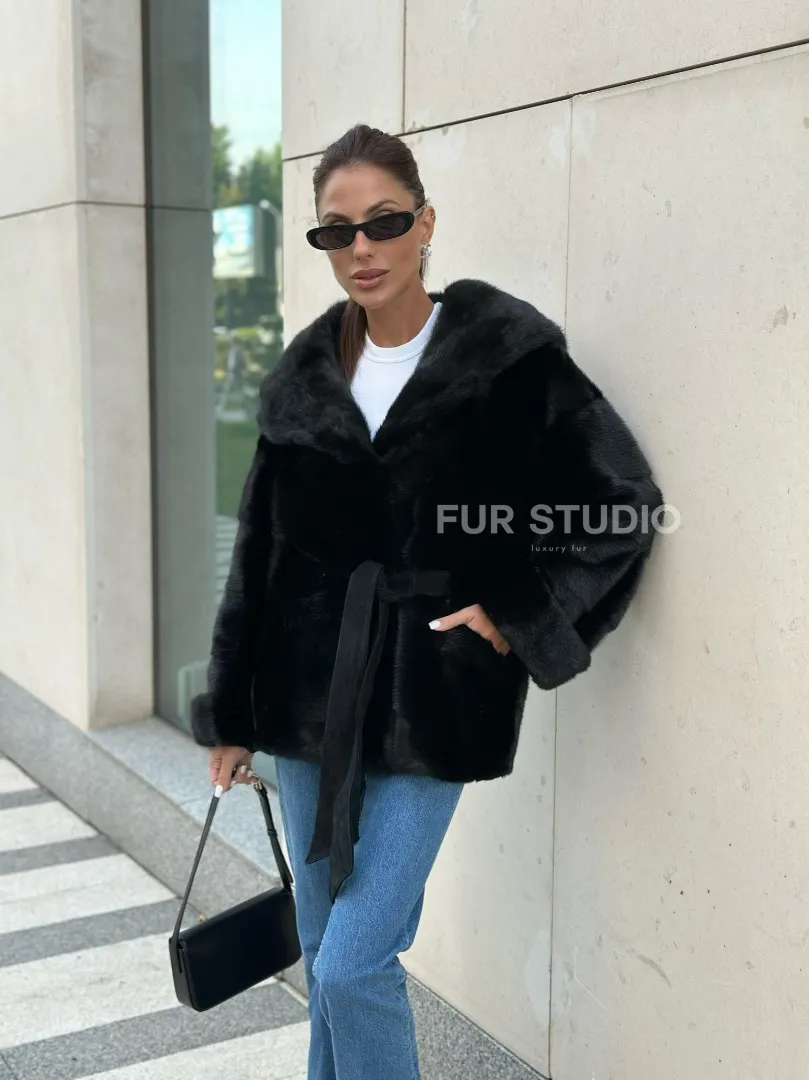 Черная норковая шуба с капюшоном - автоледи 100579