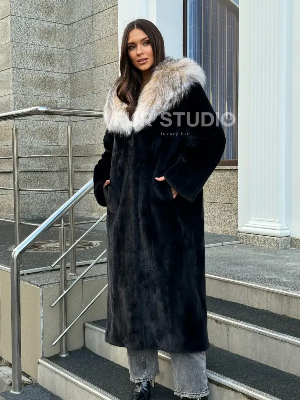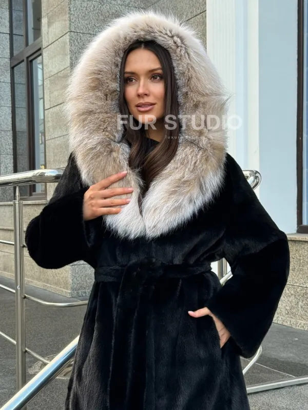 Черная норковая шуба с капюшоном из рыси доступна для покупки в нашем шоуруме Furs Studio в . У нас так же есть доставка во все города России. Добавьте немного роскоши в свой гардероб с этой шубой, которая будет служить вам многие годы.