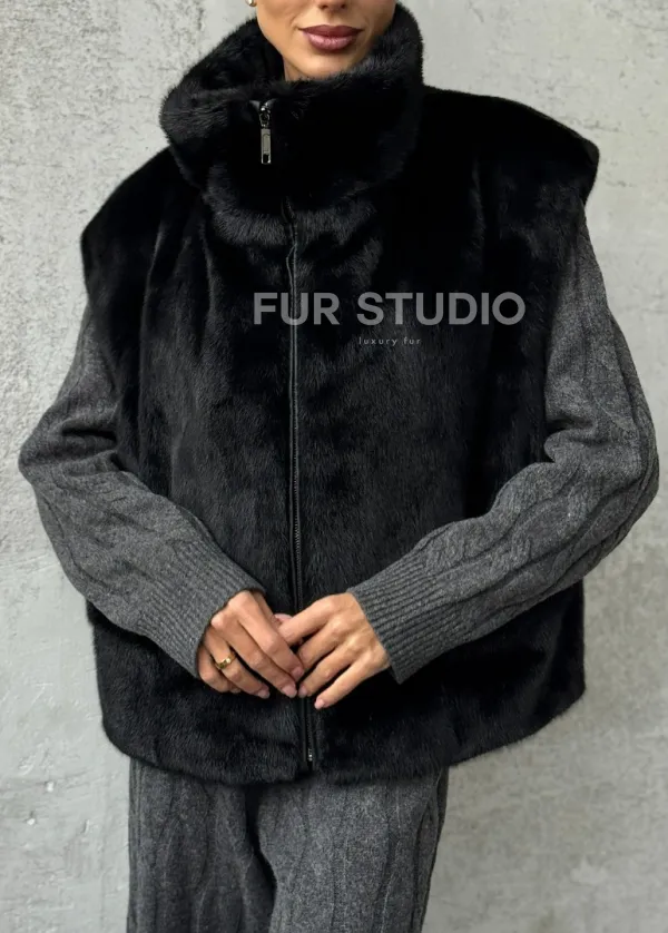 Черная норковая жилетка 102428