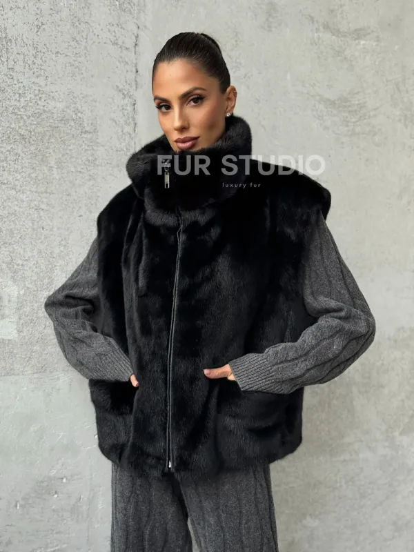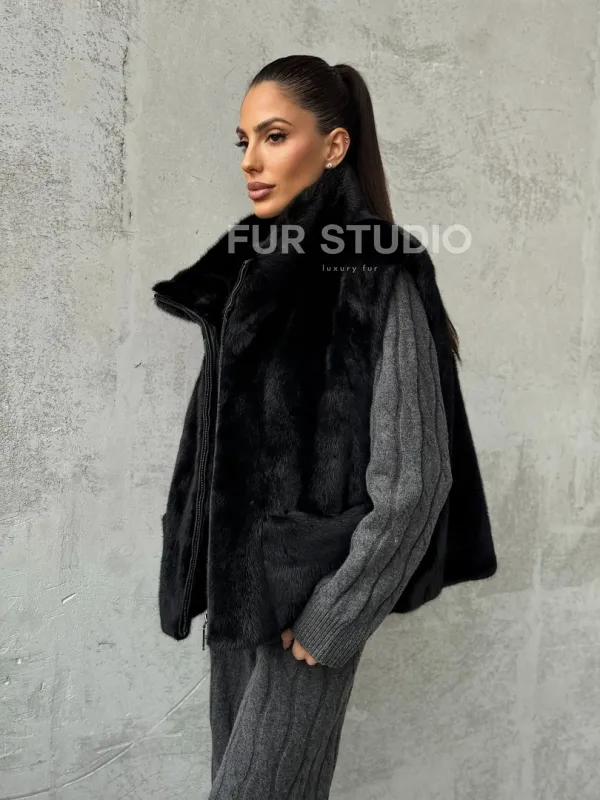 Очаруйтесь изысканной красотой и непревзойденным комфортом с нашей эксклюзивной коллекцией элитных жилетов. Изготовленный из первоклассного натурального меха, Черная норковая жилетка не только согреет вас в холодные зимние дни, но и подчеркнет ваш безупречный стиль.