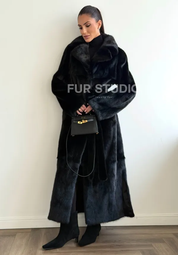 Черная шуба из меха норки - классический стиль 102637