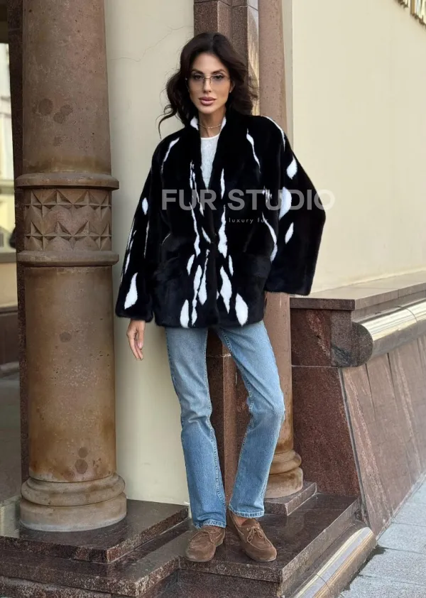 Черный норковый полушубок с рисунком доступна для покупки в нашем шоуруме Furs Studio в . У нас так же есть доставка во все города России. Добавьте немного роскоши в свой гардероб с этой шубой, которая будет служить вам многие годы.