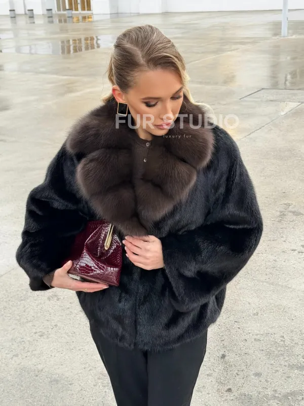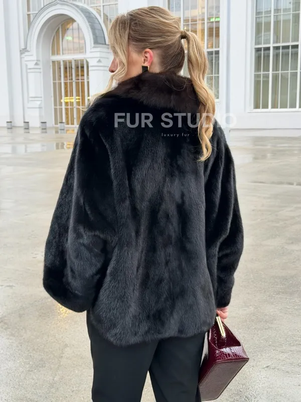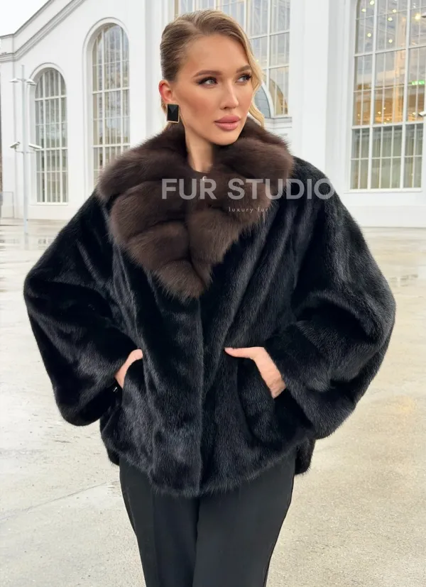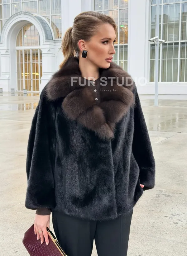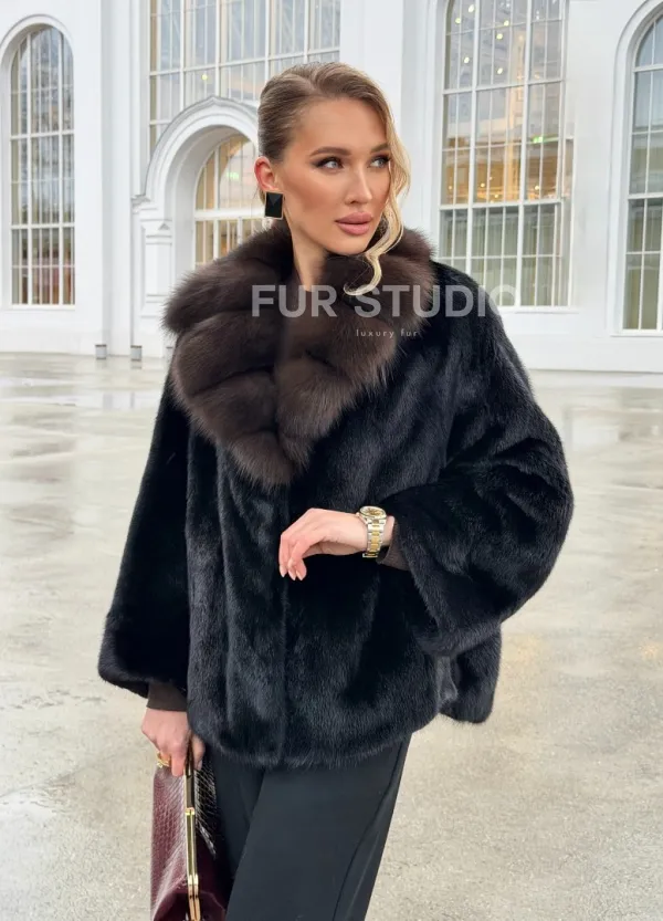 Черный норковый жакет с воротником куницы 102677