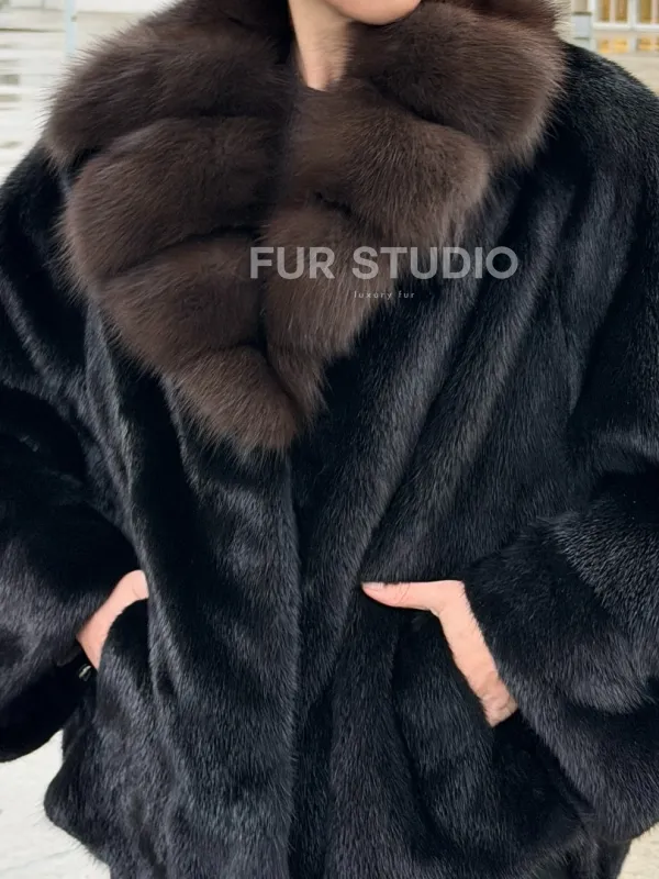 Черный норковый жакет с воротником куницы доступна для покупки в нашем шоуруме Furs Studio в . У нас так же есть доставка во все города России. Добавьте немного роскоши в свой гардероб с этой шубой, которая будет служить вам многие годы.