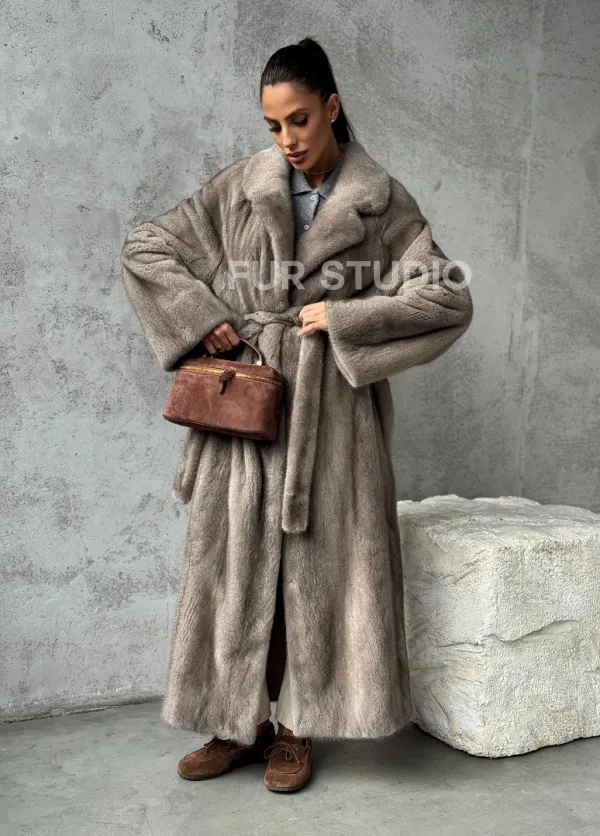 Длинная норковая шуба - цвет серый 102396