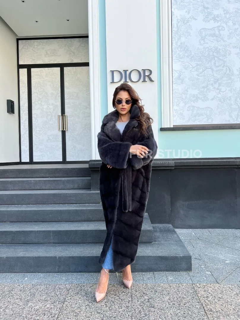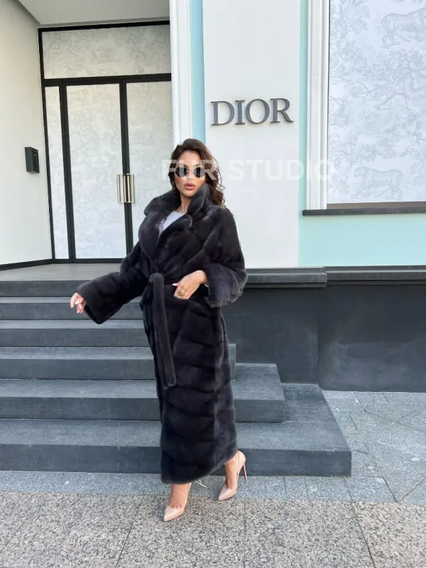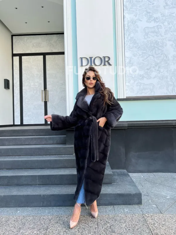 Длинная норковая шуба в цвете графит 100137