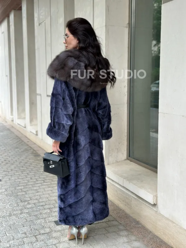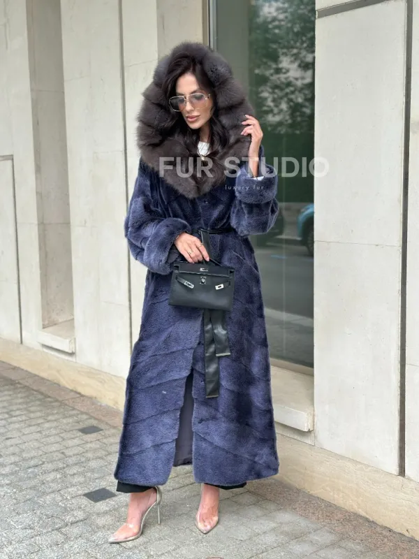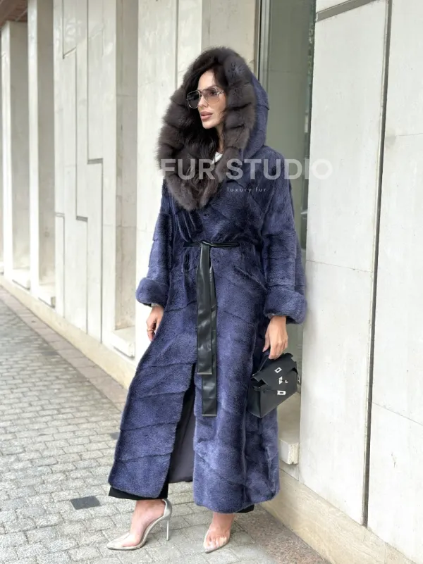 Длинная шуба из норки с капюшоном из куницы - цвет синий графит доступна для покупки в нашем шоуруме Furs Studio в . У нас так же есть доставка во все города России. Добавьте немного роскоши в свой гардероб с этой шубой, которая будет служить вам многие годы.