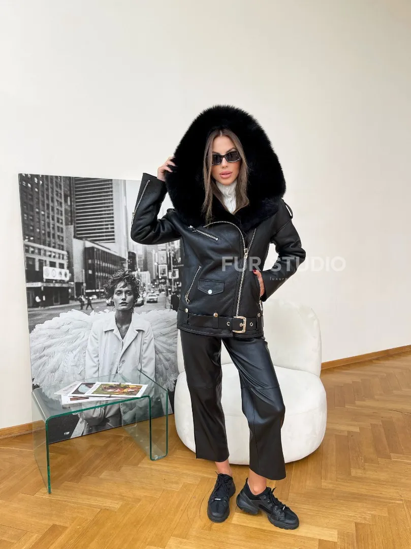 Дубленка авиатор из натуральной овчины с капюшоном – хит этого года. Модель создана для девушек, которые любят быть в тренде. Шикарный капюшон позаботится о прическе и согреет голову в прохладное время года. Прямой крой скроет недостатки фигуры. Удобный фермуар придает образу экстравагантности. Натуральная овчина позаботится о том, чтобы владелица не замерзла даже в самую холодную зиму.