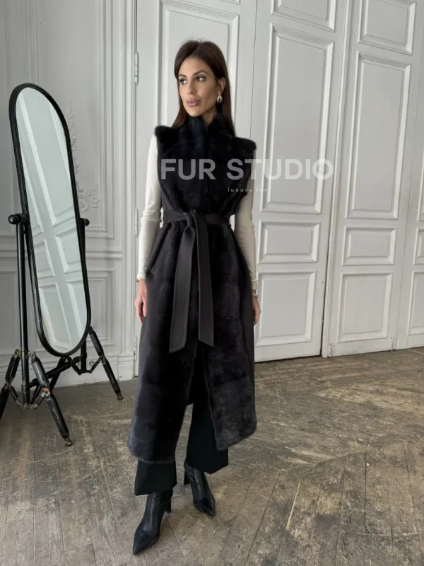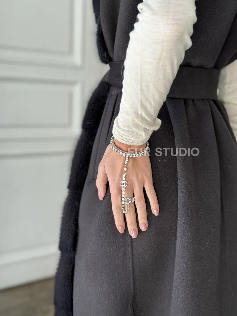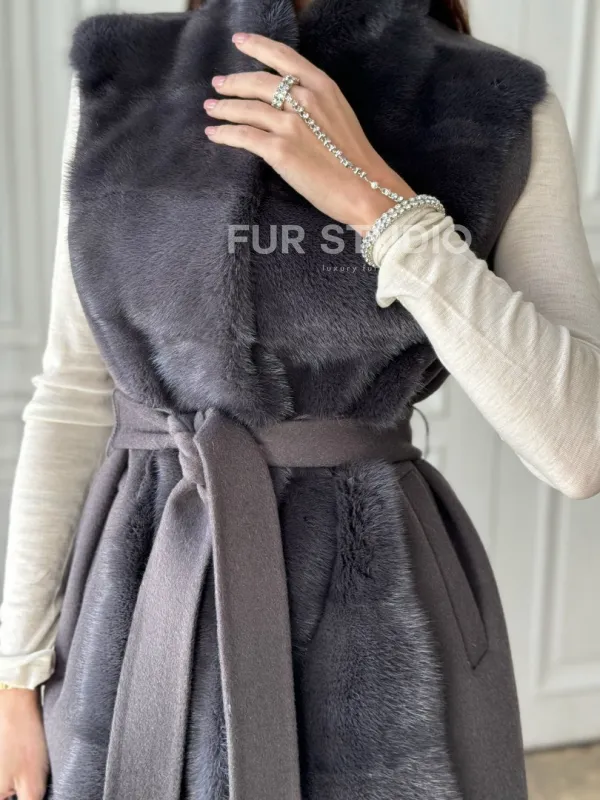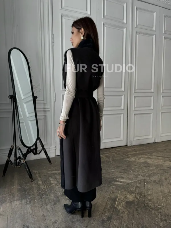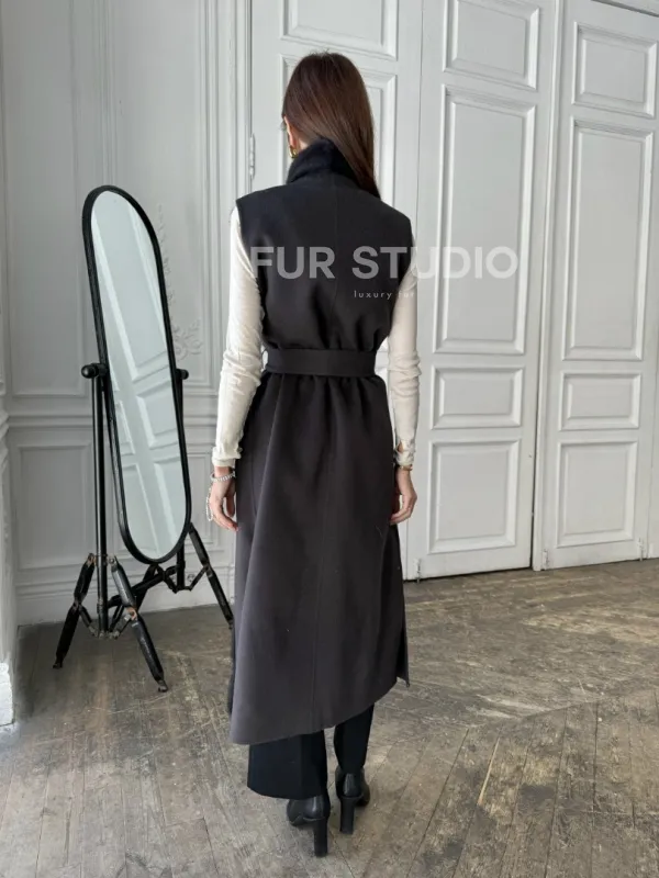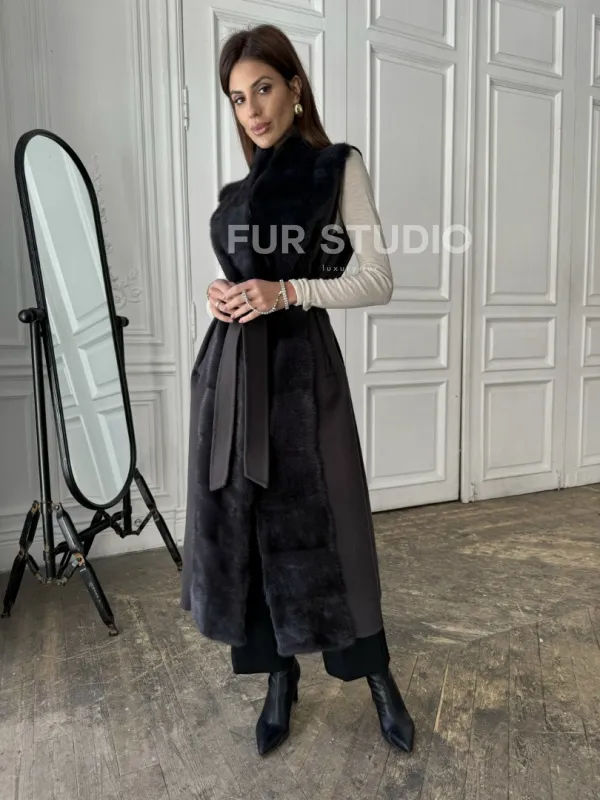 Элегантное пальто из кашемира с мехом норки 100891