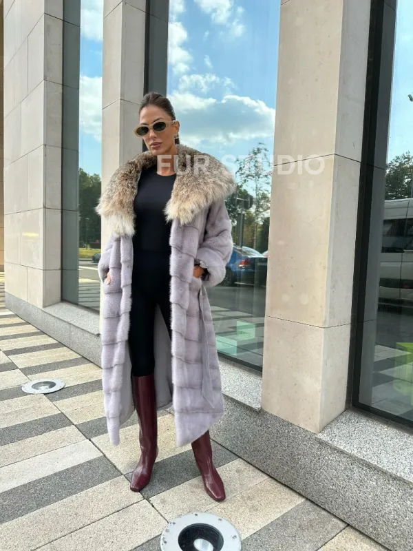 норковая шуба с капюшоном из меха рыси цвет серый сапфир доступна для покупки в нашем шоуруме Furs Studio в . У нас так же есть доставка во все города России. Добавьте немного роскоши в свой гардероб с этой шубой, которая будет служить вам многие годы.