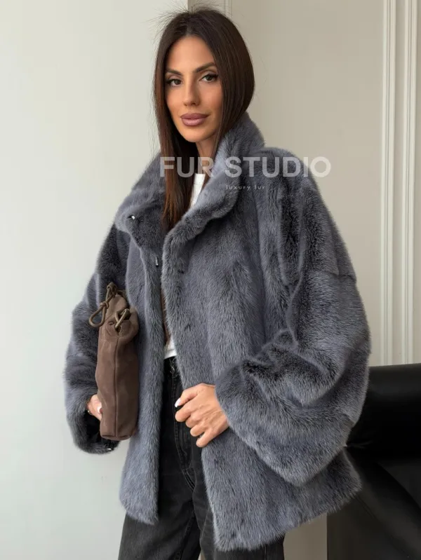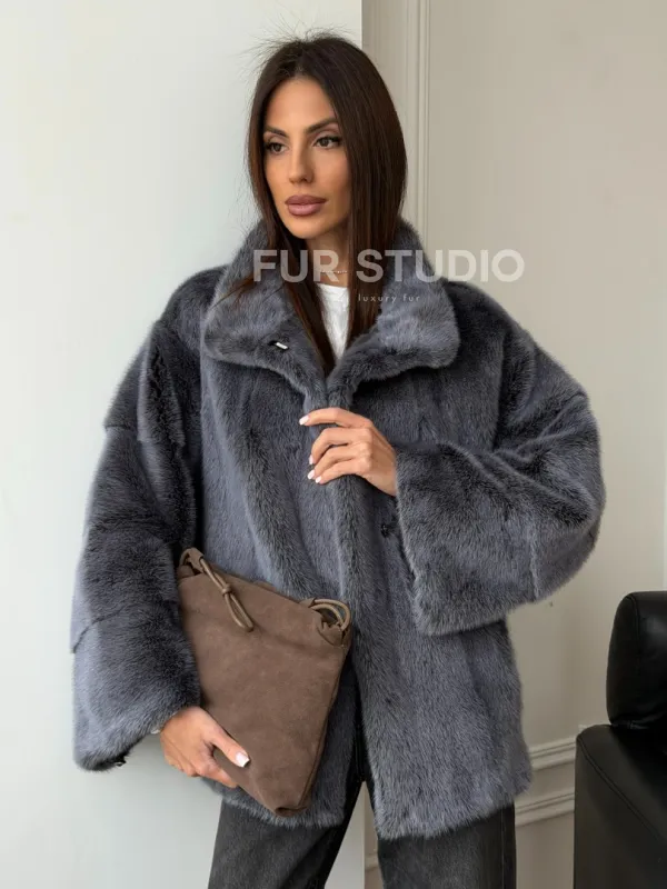 Мех данной шубы аукционная норка, цвет серый. Предлагается в размерах от 46 до 56. Длина модели 65-70 см, что выгодно подчеркивает фигуру девушек. Эта модель идеально подойдет для девушек и женщин, предпочитающих роскошные натуральные меха.