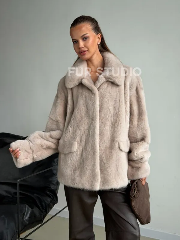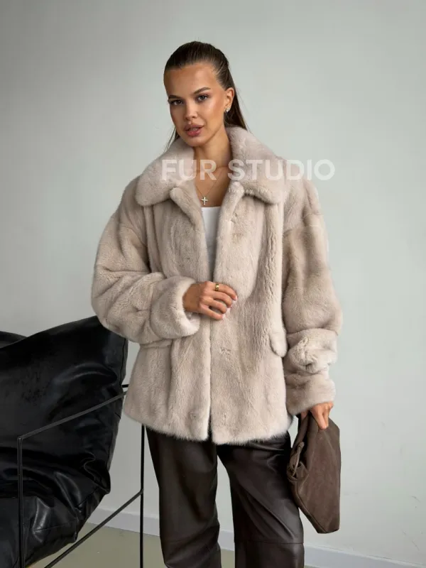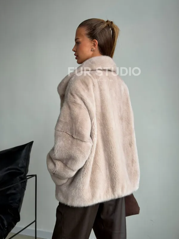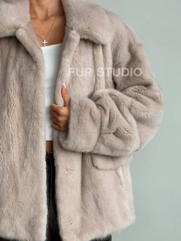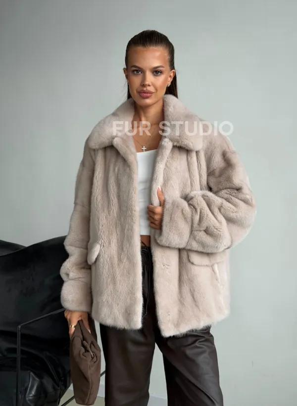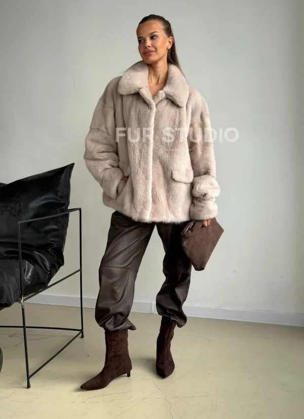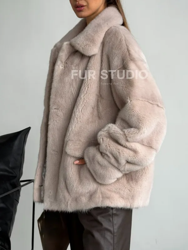 Короткая норковая шуба в цвете нюд 102596