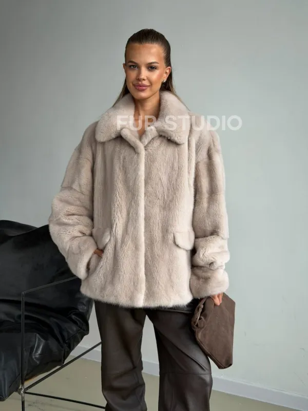 Короткая норковая шуба в цвете нюд доступна для покупки в нашем шоуруме Furs Studio в . У нас так же есть доставка во все города России. Добавьте немного роскоши в свой гардероб с этой шубой, которая будет служить вам многие годы.