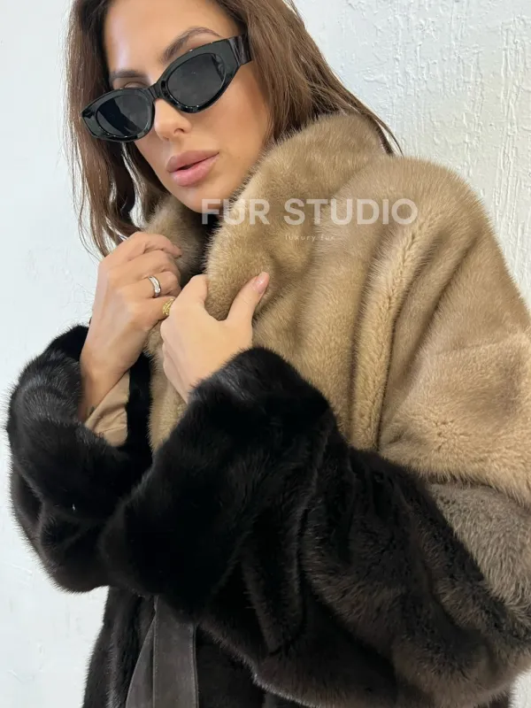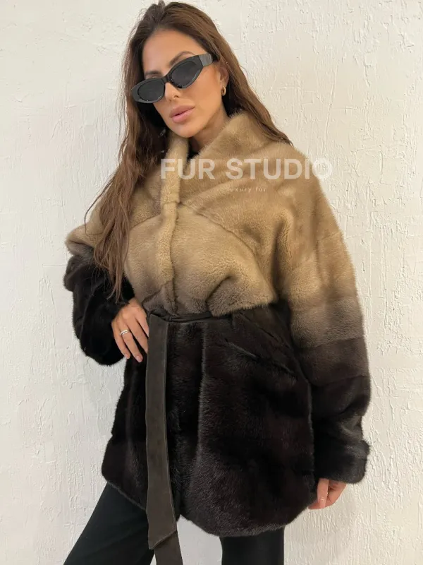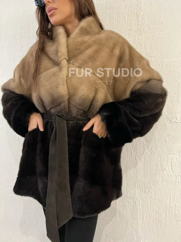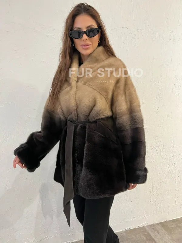 Модель подойдет для ежедневной носки и для выхода на торжественное мероприятие. Если замерзнут ручки, вы можете спрятать их в глубокие карманы. Стильный пояс визуально сделает талию уже и создаст силуэт “песочные часы”. Купить короткую шубу из меха норки эффект деграде могут девушки, которые следят за модой и любят быть в тренде.