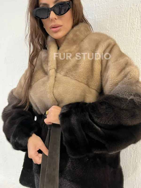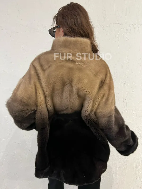 Короткая шуба из меха норки - эффект деграде - уникальная модель, которая будет приковывать взгляды к персоне. Необычная расцветка делает образ женственным и загадочным. Нежный мех норки сохранит комфортную температуру в лютые морозы. Длина удобна в носке. Модель идеальна для выхода на важное мероприятие. Размерная сетка от 42 до 48 размера позволит выбрать изделие дамам с любой фигурой.