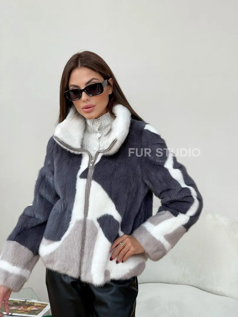 Модная норковая куртка на молнии 100164