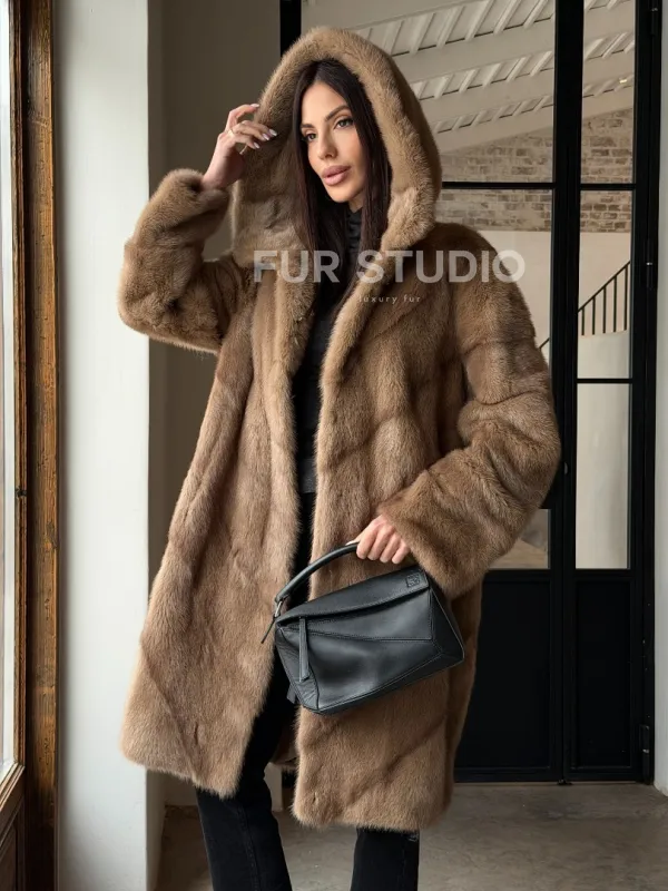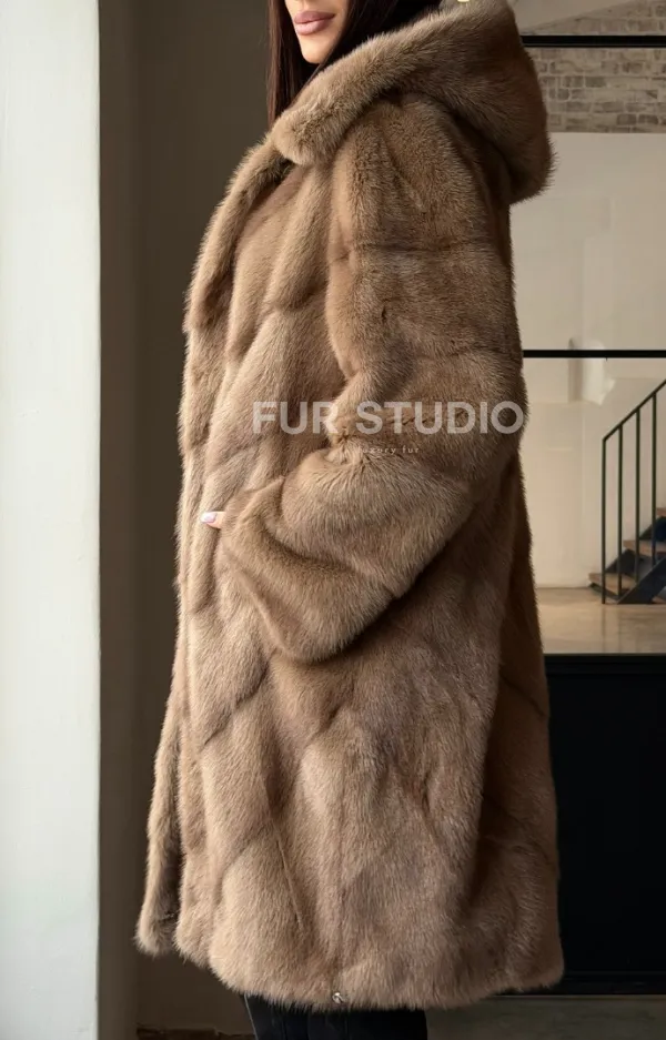Норковая шуба с капюшоном - цвет пастель 100849