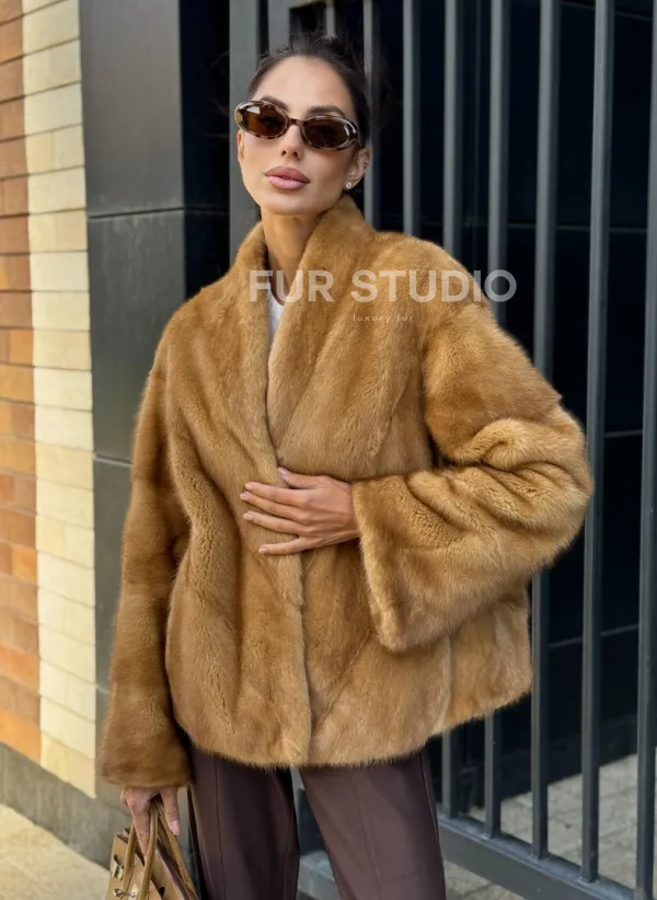 Мех данной шубы аукционная норка, цвет бежевый. Предлагается в размерах от 42 до 46. Длина модели 55-60 см, что выгодно подчеркивает фигуру девушек. Эта модель идеально подойдет для девушек и женщин, предпочитающих роскошные натуральные меха.