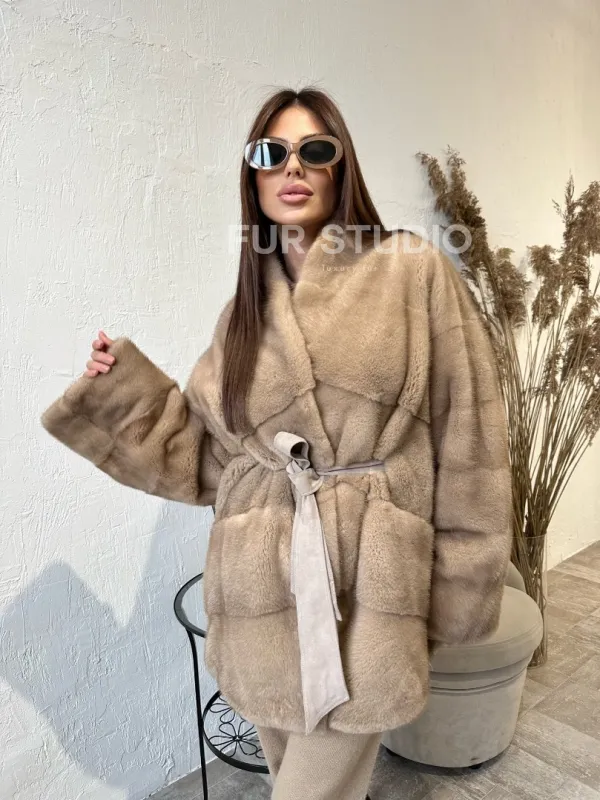 Полушубок из меха норки NAFA MINK в натуральном цвете пастель 100147