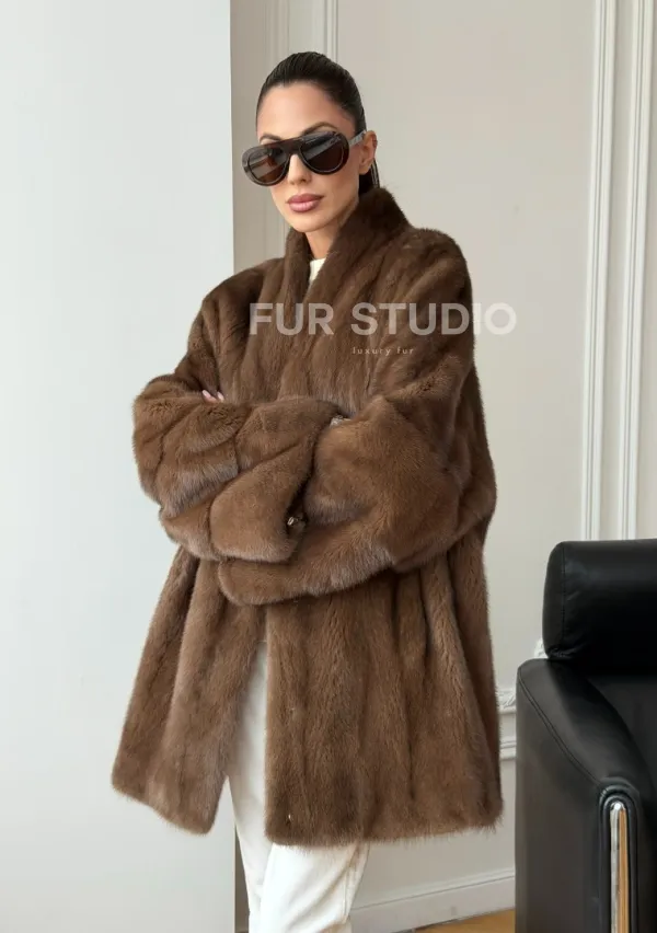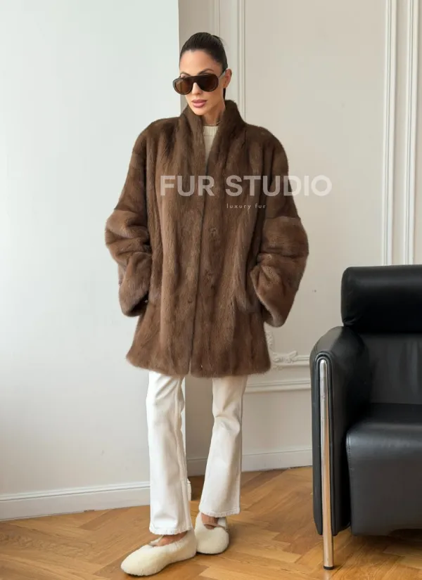 Полушубок из норки - цвет соболь доступна для покупки в нашем шоуруме Furs Studio в . У нас так же есть доставка во все города России. Добавьте немного роскоши в свой гардероб с этой шубой, которая будет служить вам многие годы.