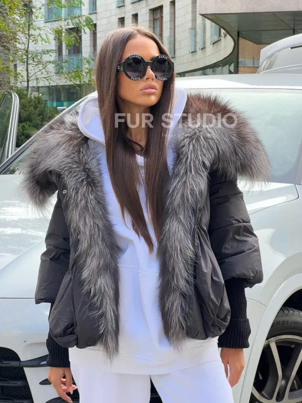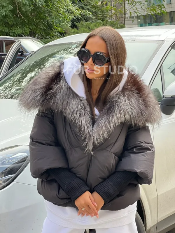 Пуховик с воротником из чернобурой лисы 100201