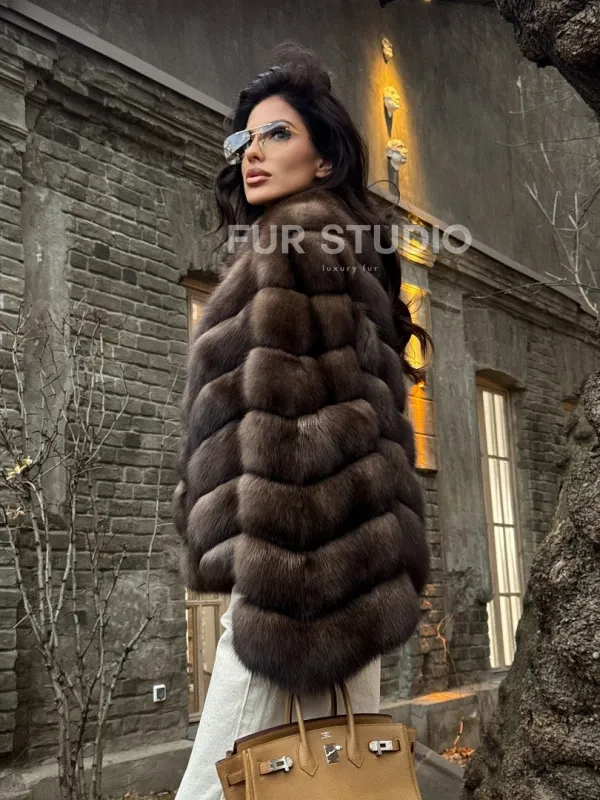 Благородный цвет выгодно оттенит цвет волос и глаз владелицы. Изделие будет гармонично смотреться с базовым гардеробом, подойдет под вечерний наряд. Добавьте к шубе брендовую сумочку и стильную обувь – будете выглядеть, как с обложки журнала. Купить роскошную шубу из меха соболя стойка воротник могут женщины, которые знают, что хотят и берут от жизни все.