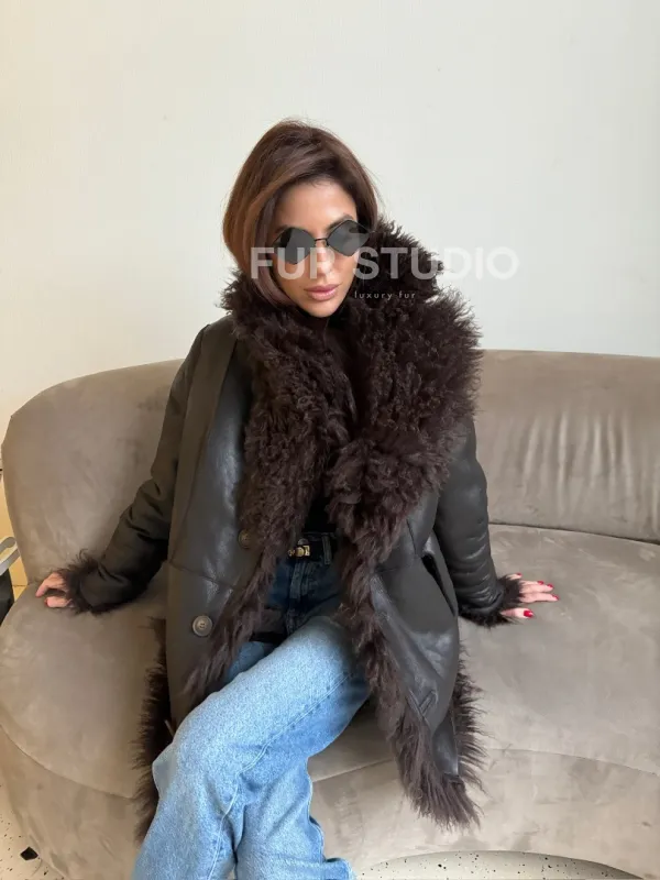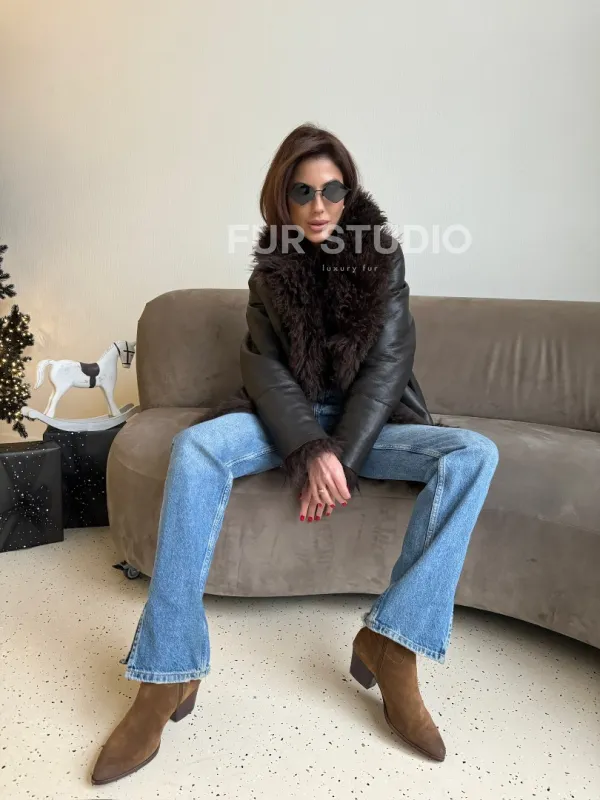 Шуба - дубленка из натуральной овчины (двусторонняя) доступна для покупки в нашем шоуруме Furs Studio в , а также предлагается удобная доставка во все города России. Обогатите свой гардероб этой дубленкой, которая прослужит вам многие годы, добавив немного роскоши в ваш повседневный образ.