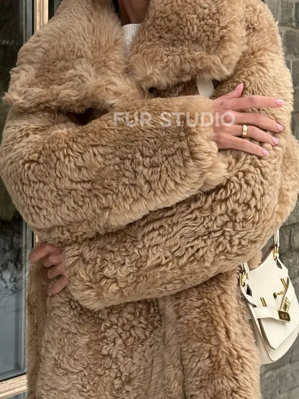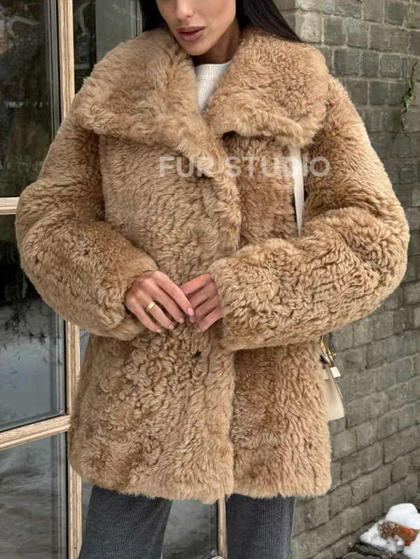 Шуба - дубленка из овчины в бежевом цвете 101433