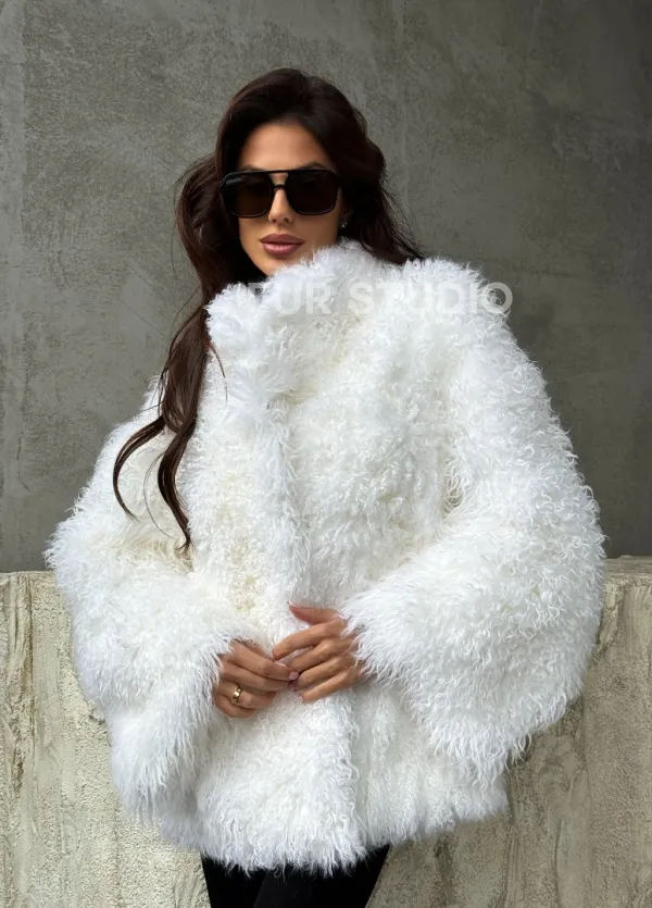 Мех данной шубы альпака, цвет белый. Предлагается в размерах от 42 до 50. Длина модели 65-70 см, что выгодно подчеркивает фигуру девушек. Эта модель идеально подойдет для девушек и женщин, предпочитающих роскошные натуральные меха.
