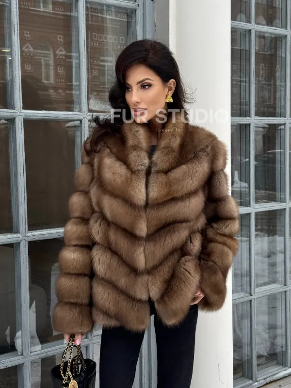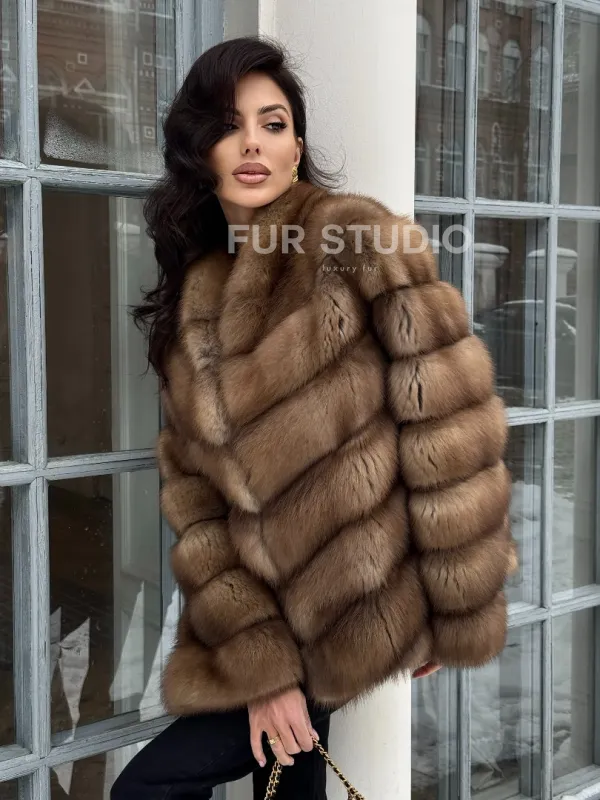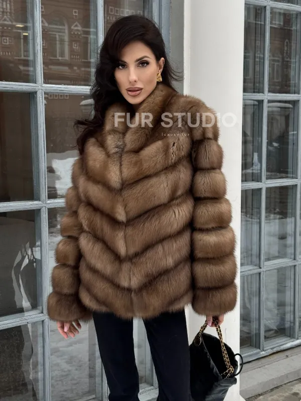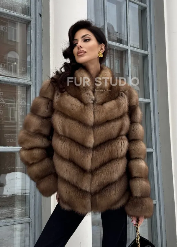 Шуба из меха куницы с V-образным воротником доступна для покупки в нашем шоуруме Furs Studio в . У нас так же есть доставка во все города России. Добавьте немного роскоши в свой гардероб с этой шубой, которая будет служить вам многие годы.