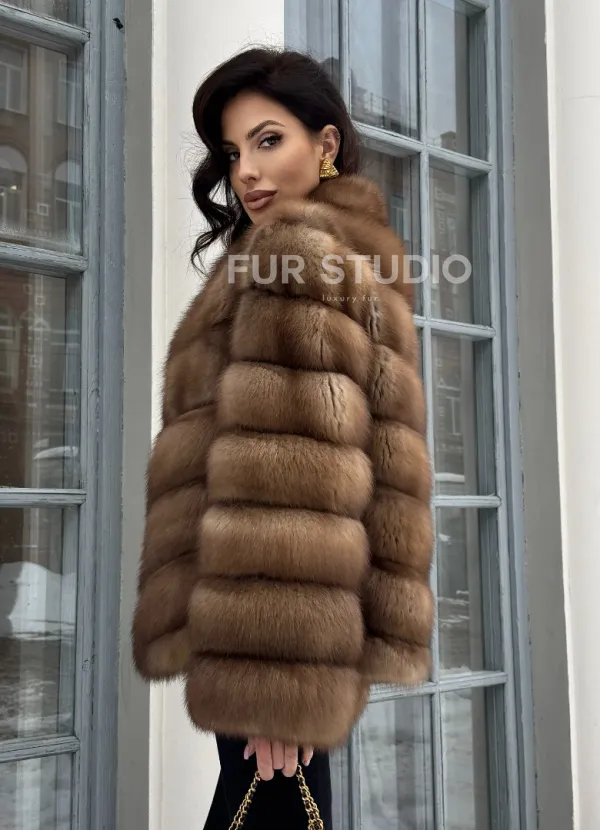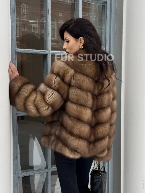 Мех данной шубы лесная куница, цвет натуральный. Предлагается в размерах от 42 до 46. Длина модели 60-65 см, что выгодно подчеркивает фигуру девушек. Эта модель идеально подойдет для девушек и женщин, предпочитающих роскошные натуральные меха.