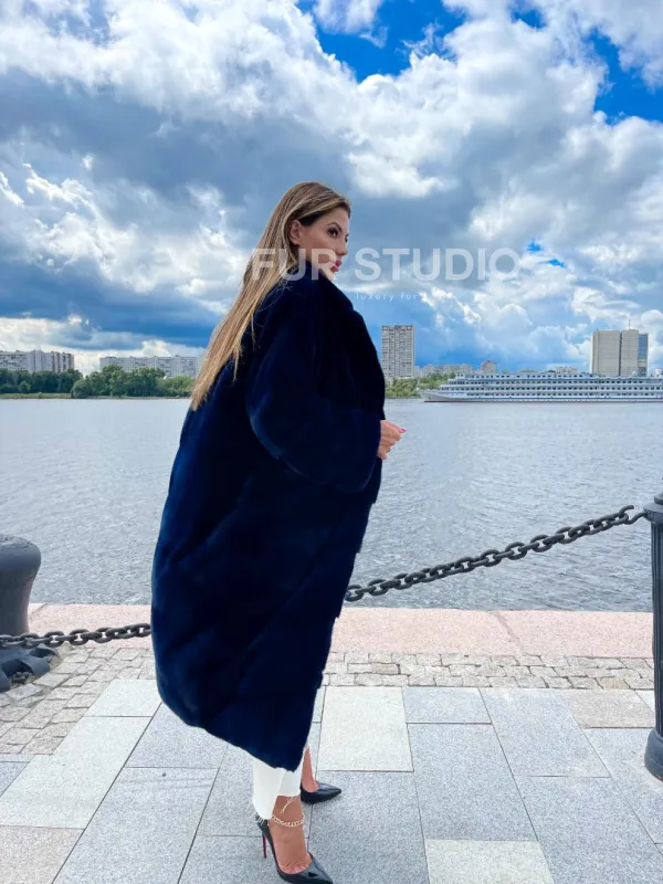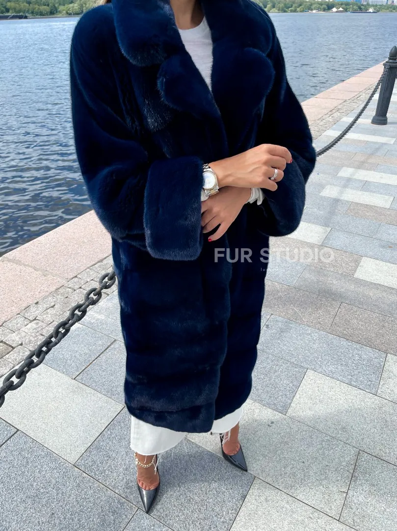 Цвет индиго выгодно подчеркнет оттенок волос и кожи владелицы. Широкие манжеты делают акцент на тонкости кистей. Необычный воротник позаботится о комфорте шеи и подчеркнет ее изящество. Купить шубу из плюшевой норки в цвете индиго могут девушки, которые любят приковывать взгляды и находится в центре внимания.