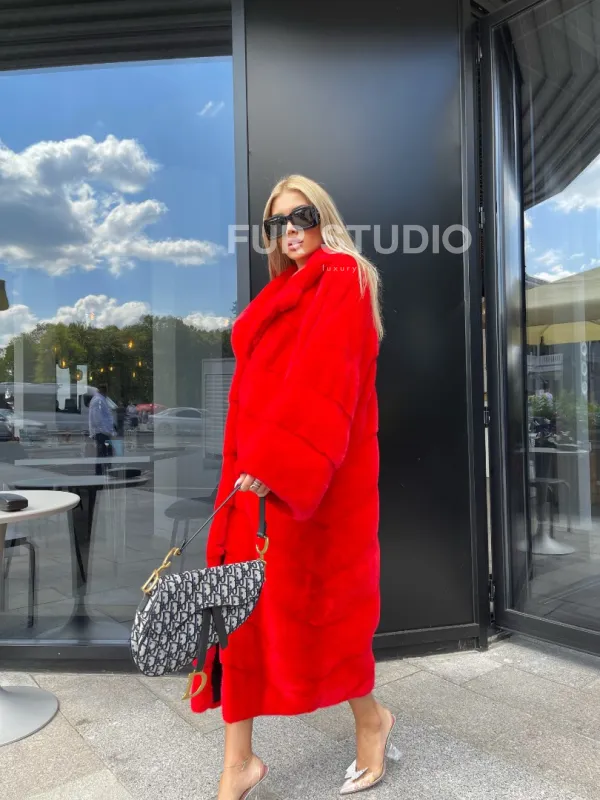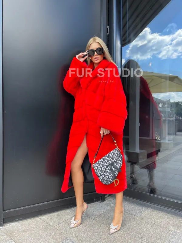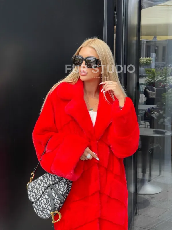 Шуба из норки Velvet в красном цвете 100107
