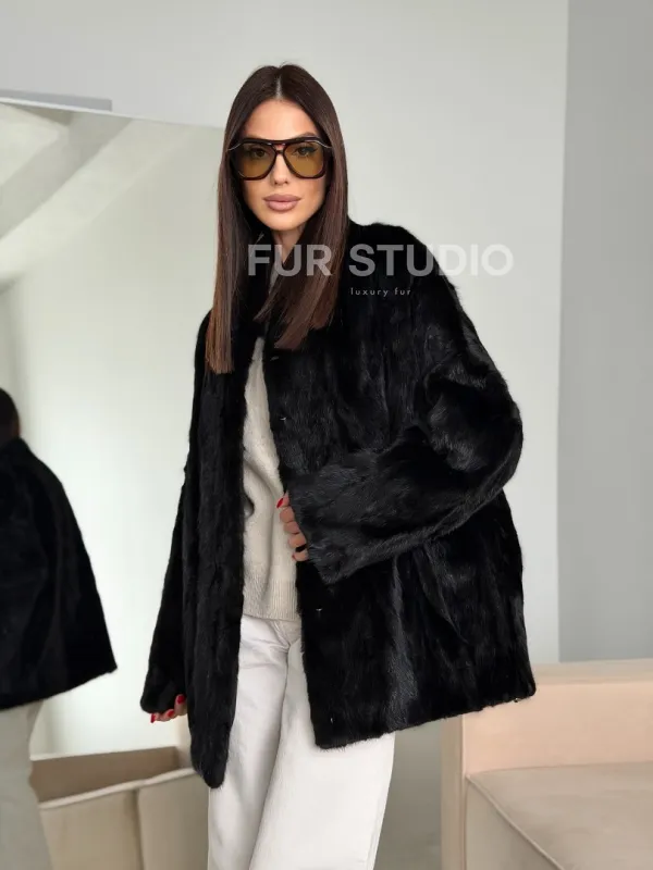 Мех данной шубы аукционная норка , цвет черный. Предлагается в размерах от 42 до 48. Длина модели 70-75 см, что выгодно подчеркивает фигуру девушек. Эта модель идеально подойдет для девушек и женщин, предпочитающих роскошные натуральные меха.
