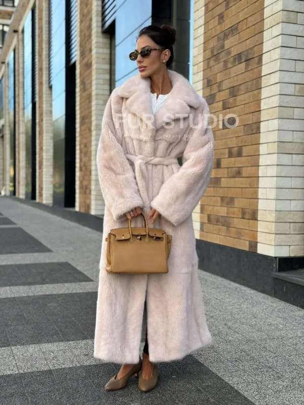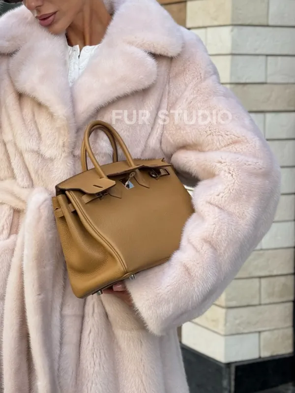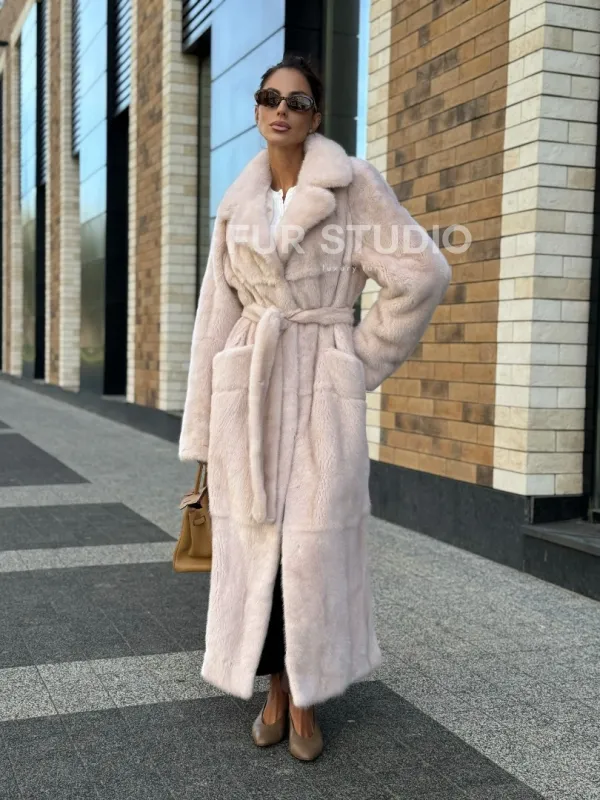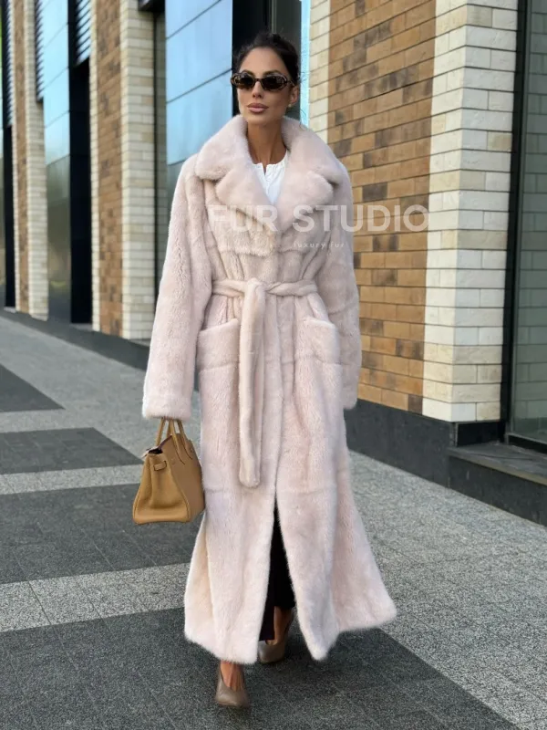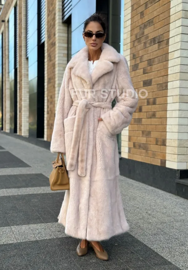 Шуба норковая - пальто с поясом, классика 102241