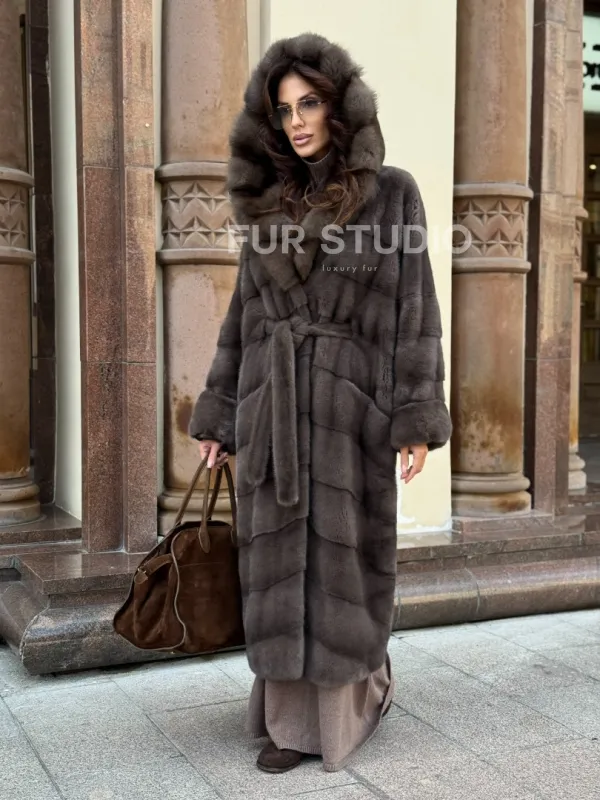 Шуба норковая в цвете мокко с капюшоном куница доступна для покупки в нашем шоуруме Furs Studio в . У нас так же есть доставка во все города России. Добавьте немного роскоши в свой гардероб с этой шубой, которая будет служить вам многие годы.