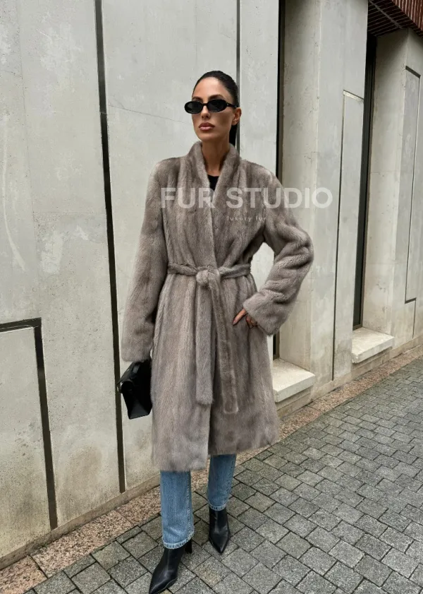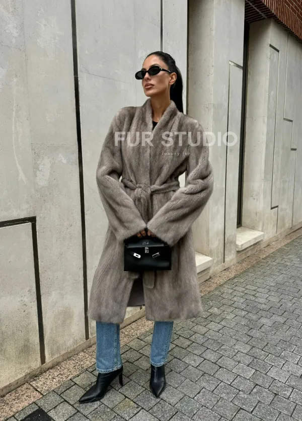 Мех данной шубы аукционная норка, цвет серый. Предлагается в размерах от 42 до 50. Длина модели 105-110 см, что выгодно подчеркивает фигуру девушек. Эта модель идеально подойдет для девушек и женщин, предпочитающих роскошные натуральные меха.