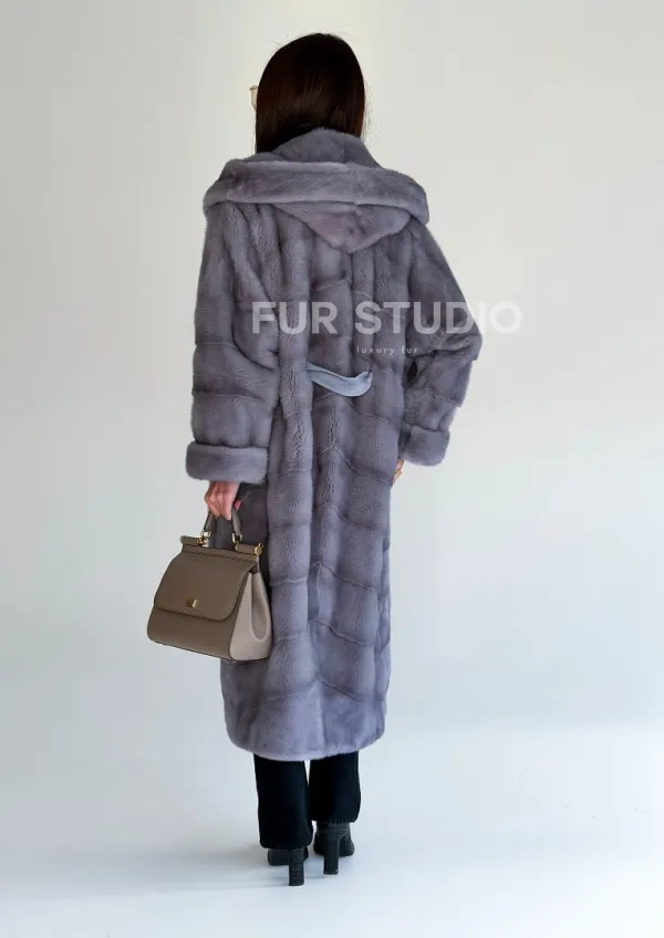 Удлиненная норковая шуба - кимоно с капюшоном 101800