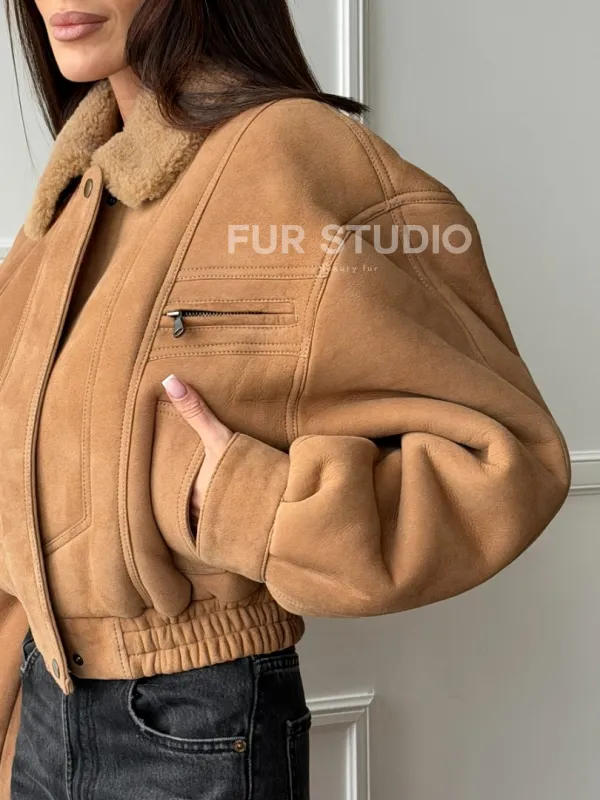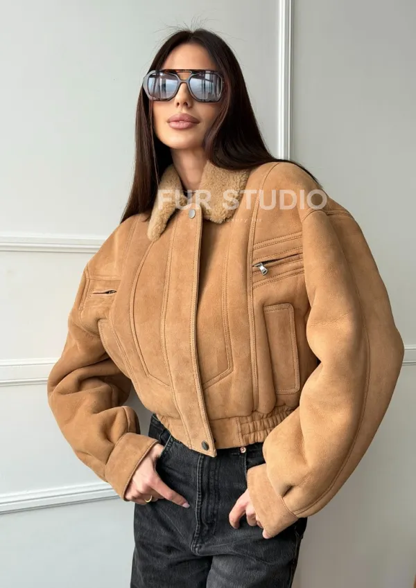 Зимняя женская дубленка - бомбер 102754